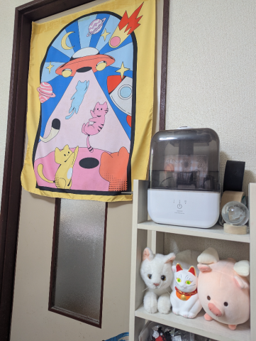 部屋の至るところになんらかのニャンコがいますが、、